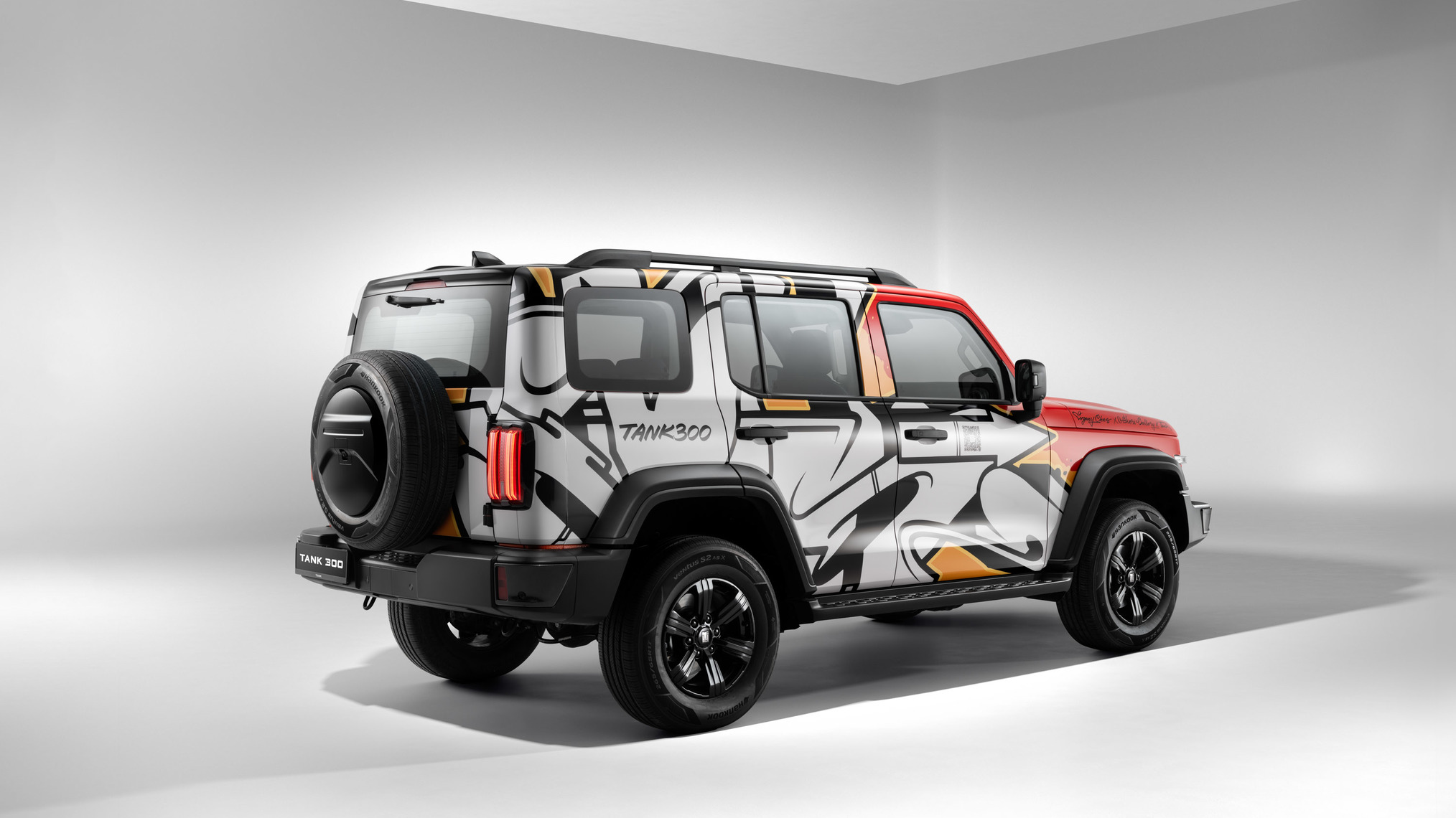 Результатом арт-коллаборации между брендом премиальных внедорожников TANK и ASKERI GALLERY становится модель TANK 300. Автомобиль в авторском принте современного художника Евгения Чес отражает прогрессивный взгляд на развитие искусства граффити и стрит-арта в современном мире. TANK 300 в уникальной манере сочетает противоположности: внедорожный арсенал и брутальная внешность совмещаются в нем с комфортом для повседневного использования в городе.